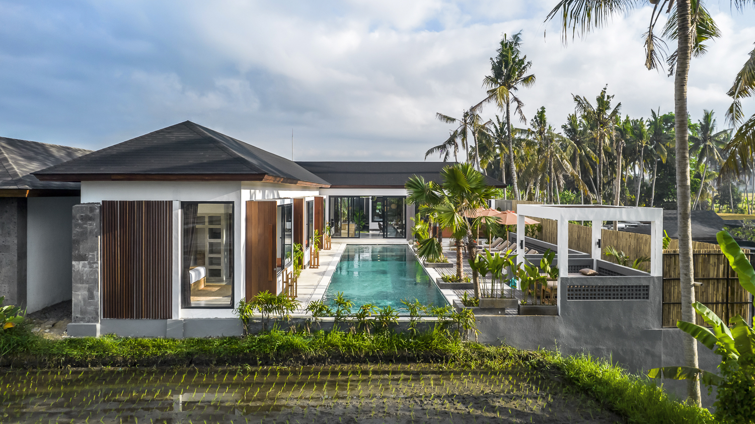 This impressive 5‑bedroom, 5‑bathroom villa (plus powder room) offers refined comfort just 7 minutes by bike from Ubud Center. Set on 700 sqm of land with 220 sqm of built space, the villa is designed for modern living with a tropical touch. A dedicated massage area adds to its charm, making it ideal for relaxation, wellness retreats, or luxury rentals.