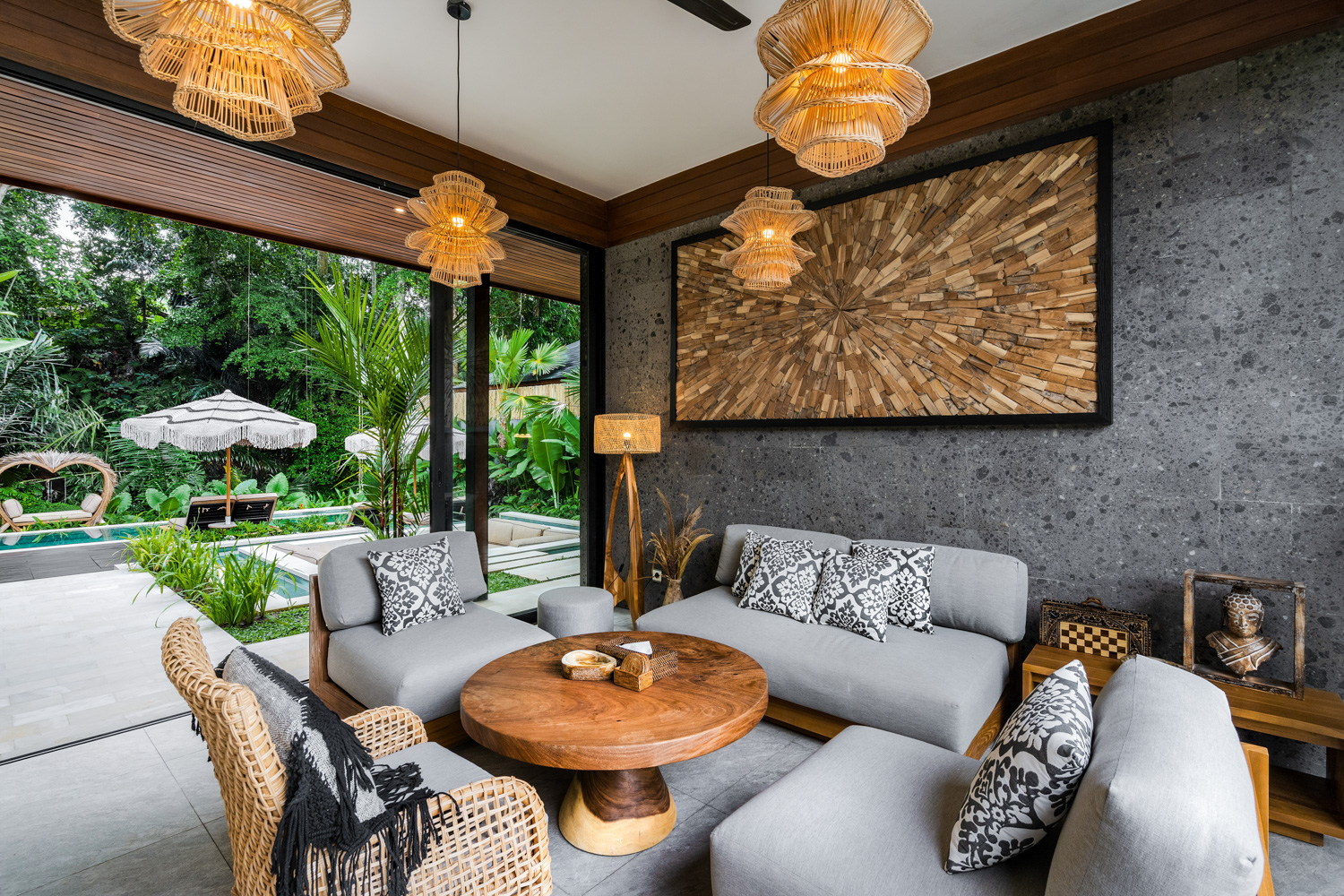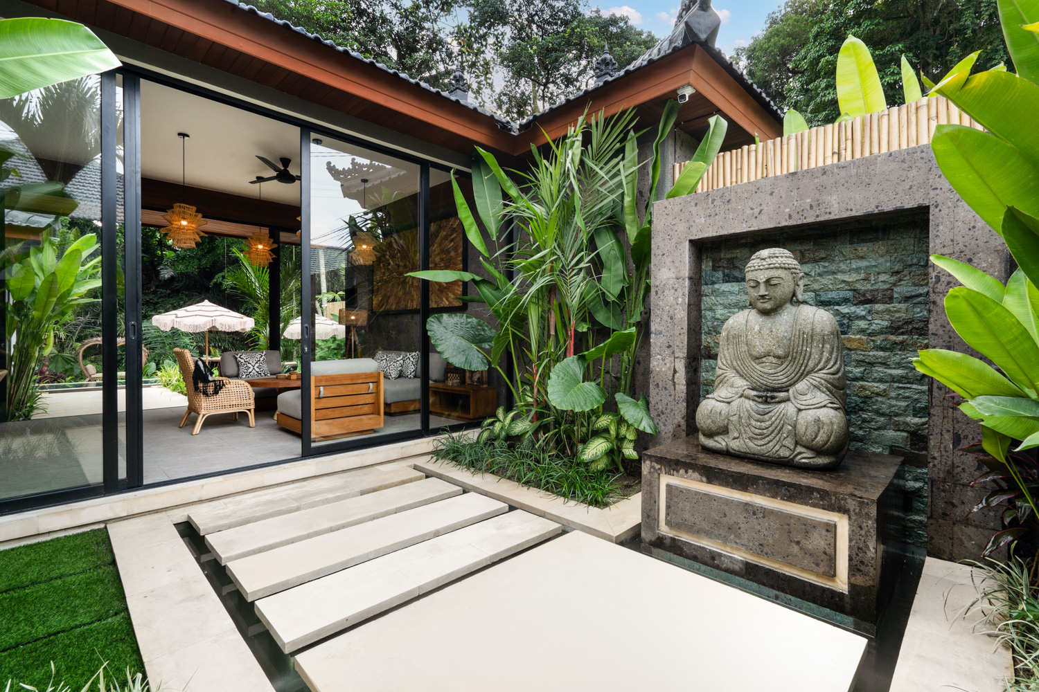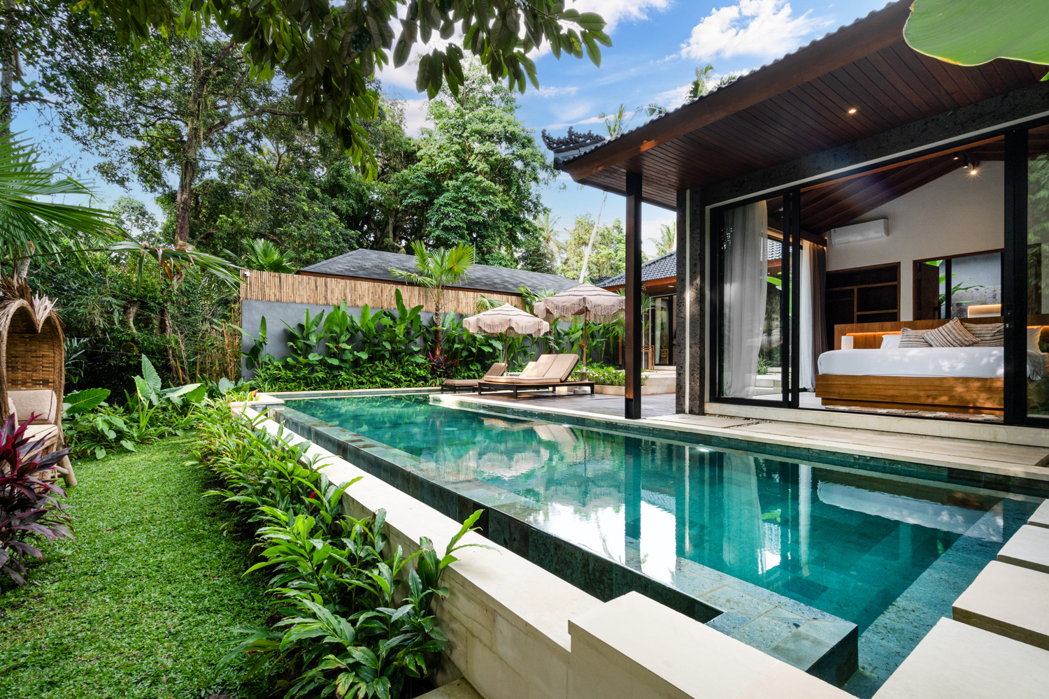 Surrounded by lush jungle and terraced rice fields, the villa offers a peaceful environment while being conveniently close to cultural landmarks, art galleries, and dining options in Ubud.