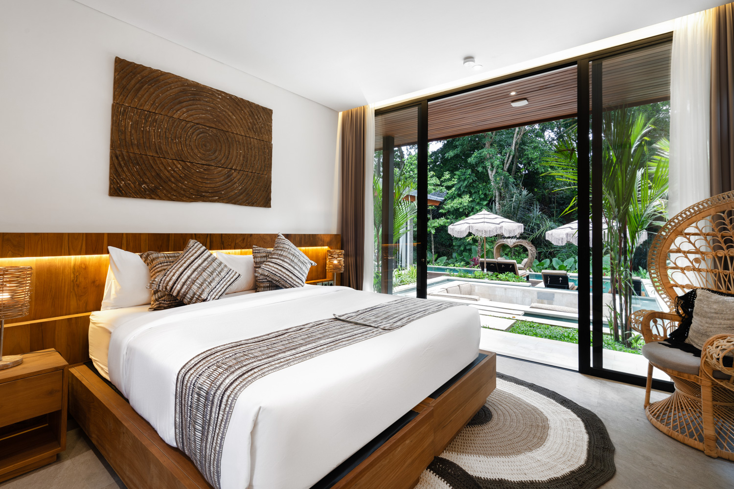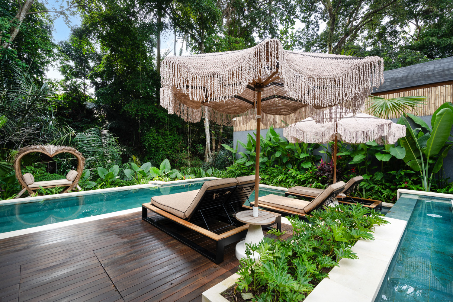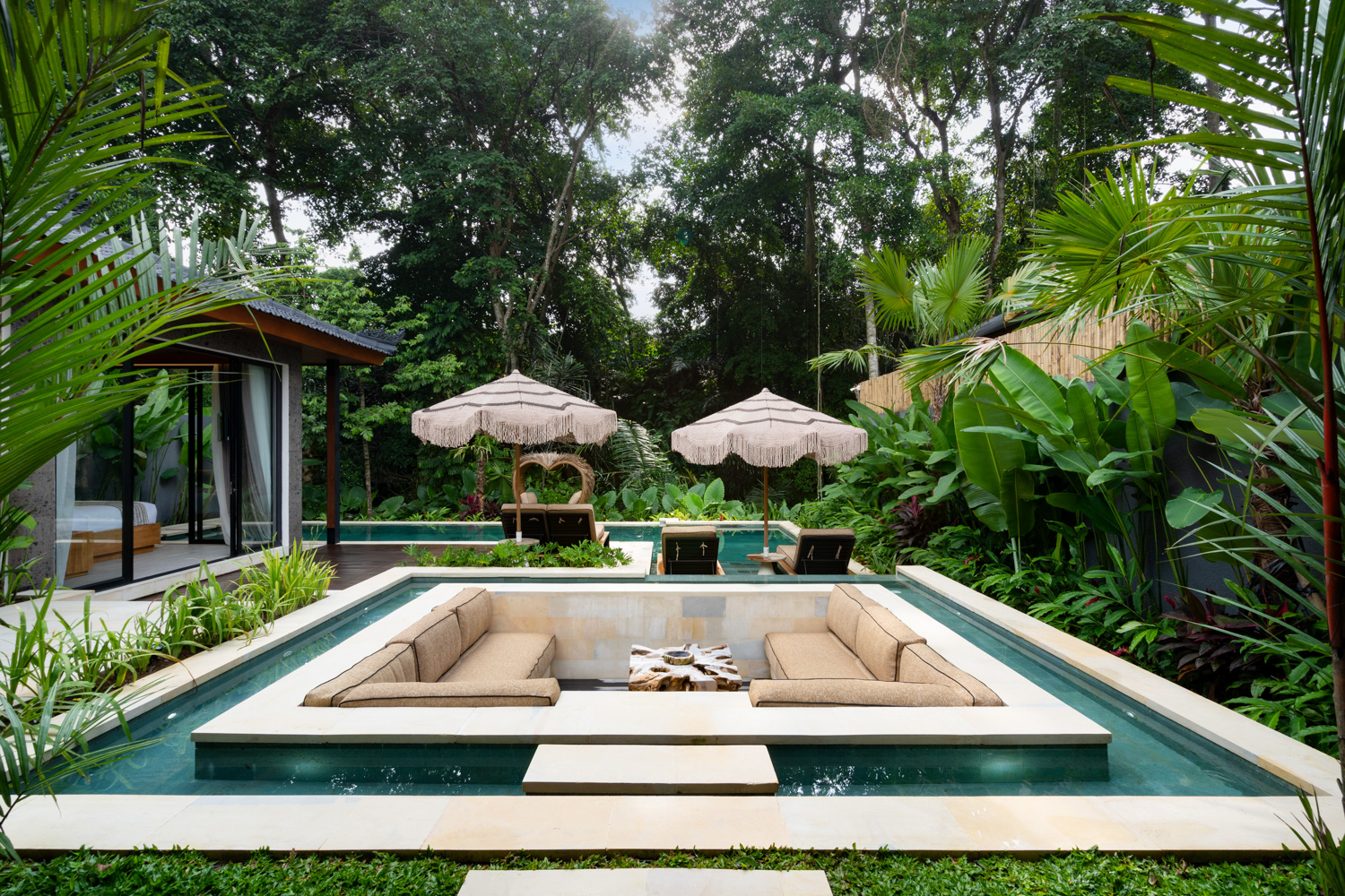 Surrounded by lush jungle and terraced rice fields, the villa offers a peaceful environment while being conveniently close to cultural landmarks, art galleries, and dining options in Ubud.