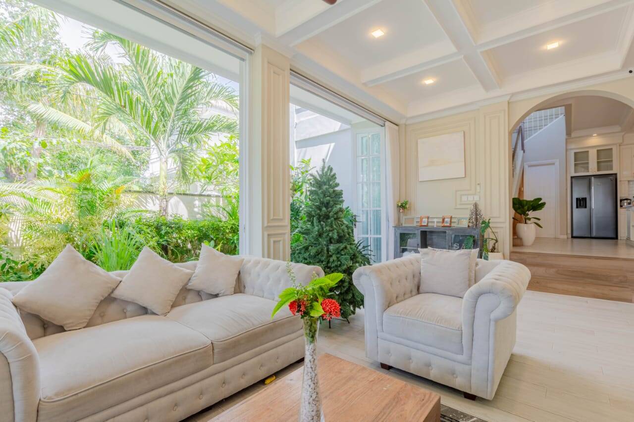 Built on 460 sqm of land with a total building size of 500 sqm across three levels, the villa is designed with a strong focus on privacy, functionality, and indoor–outdoor living. Large openings allow natural light and airflow throughout the property, creating a bright and comfortable living environment.