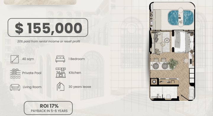 Also available in the same complex: Duplex Apartment with Private Pool at $245,000