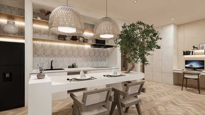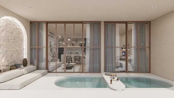 Nestled in the serene and exclusive hills of Bingin, Uluwatu, this spacious 1-bedroom off-plan villa offers the perfect mix of modern elegance and tropical charm. Designed with comfort and functionality in mind, this apartment features an open-plan living and dining area, a modern, fully equipped kitchen, and a private balcony that opens up to a stunning view and swimming pool.