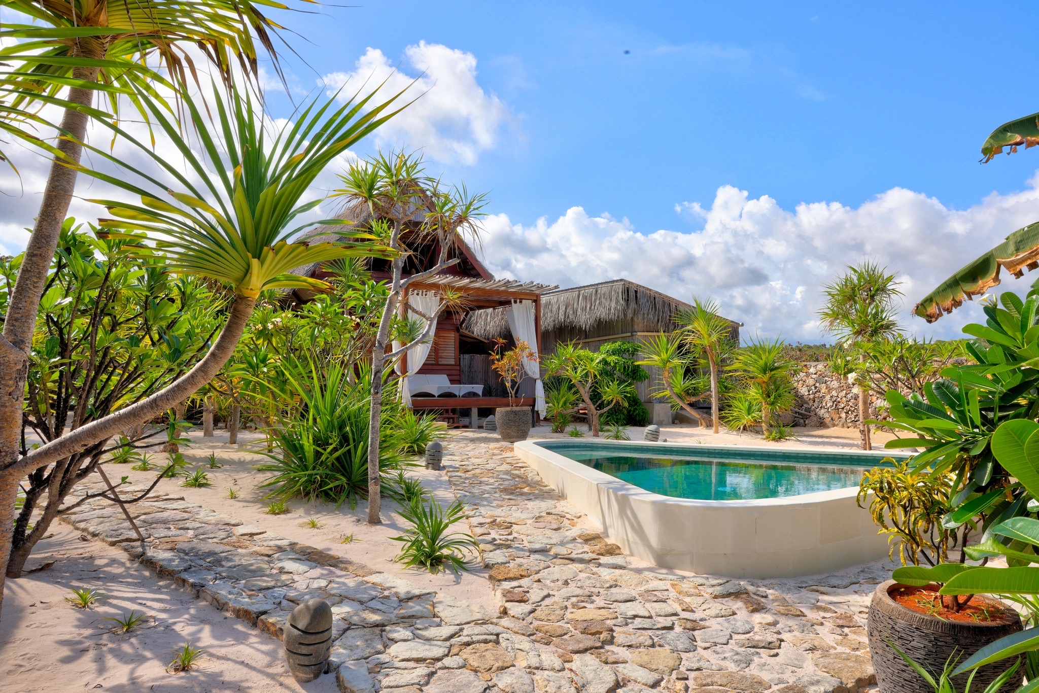 Experience the beauty of island living on Rote Island with this exceptional beachfront property, right in front of crystal blue waters. Set on 1,777 m² of freehold land, this tropical villa compound features three bungalows, one bungalow cottage and a main house (kitchen, living room, restaurant are), designed to capture the island’s natural serenity while offering modern comfort and full functionality.