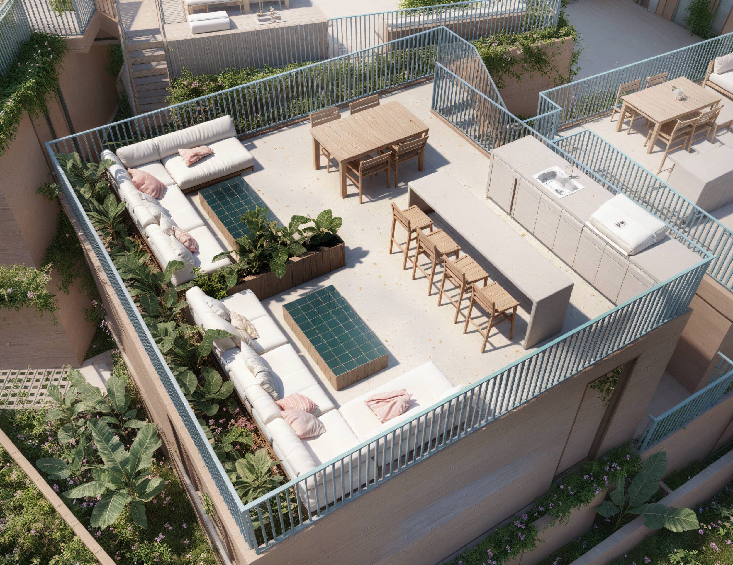 Nestled in a peaceful setting, this development offers the perfect blend of modern comfort and natural surroundings. Residents can enjoy a rooftop terrace with panoramic views and a shared pool for relaxation. Whether you’re looking for an investment opportunity or a new home in Bali, these studio apartments are not to be missed.