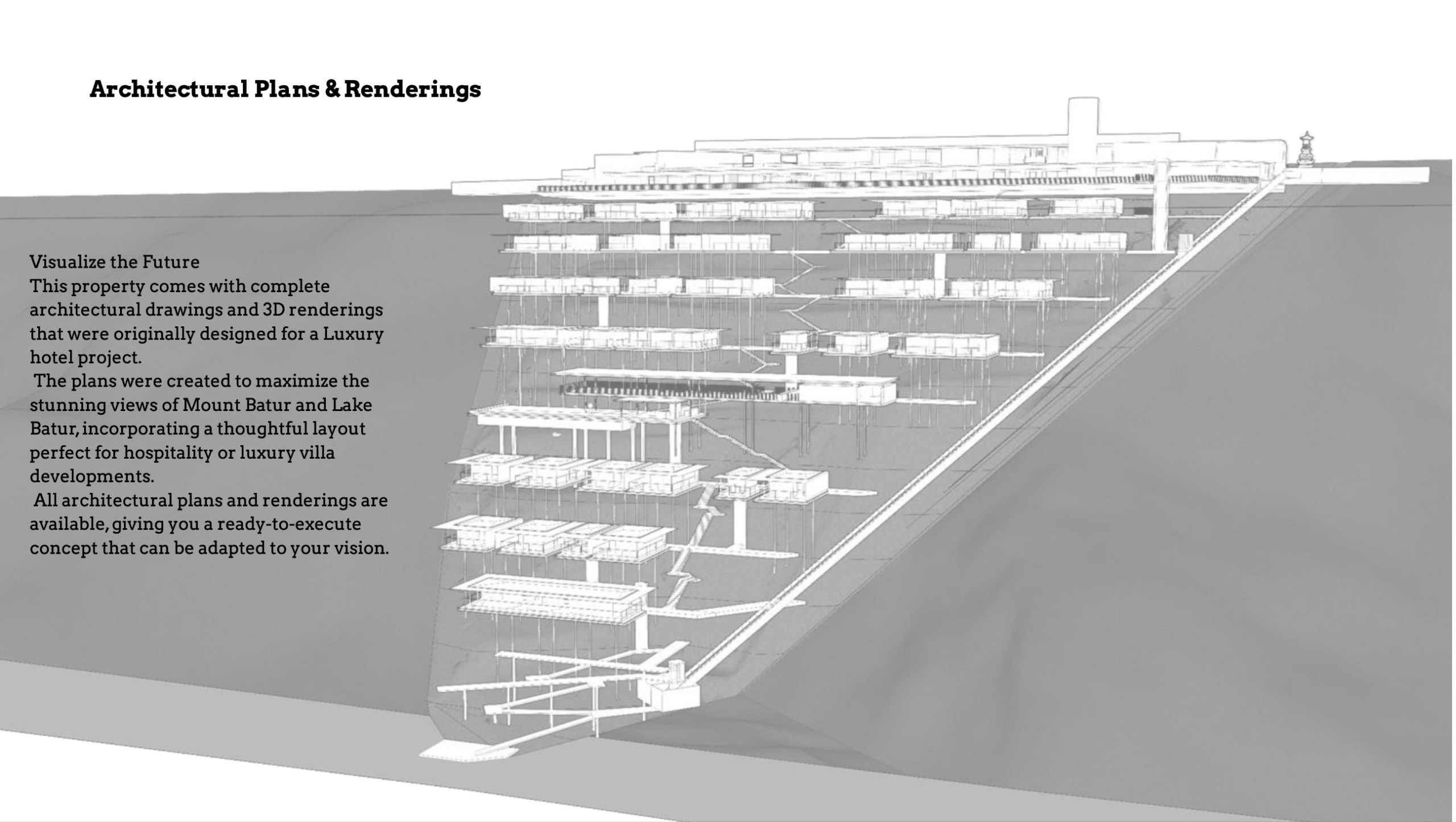 Little extra – This property is sold with complete architectural concept plans, 3D renderings, a topographic survey, and a soil test, all originally developed for a luxury hotel project. It’s ready for investors or developers seeking to launch a hospitality, wellness, or boutique resort venture in one of Bali’s most visually stunning destinations.