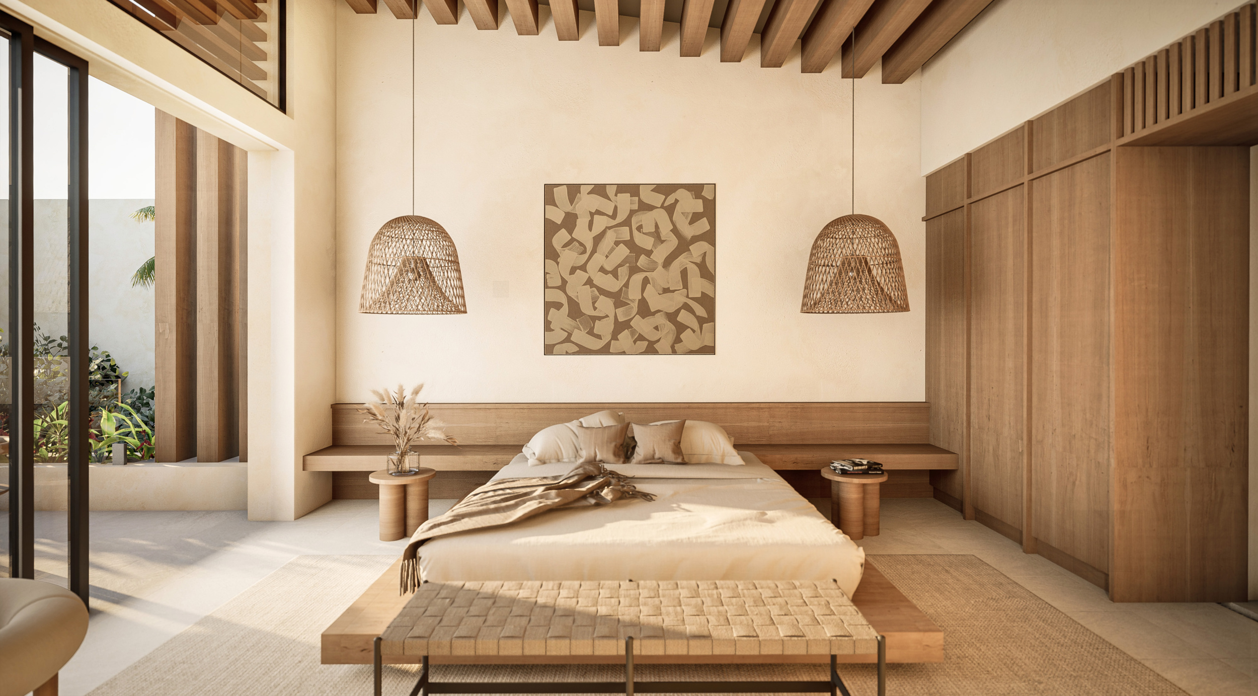 Thoughtfully crafted with meticulous attention to detail, the villa showcases a Japandi interior style—blending minimalism with natural textures—resulting in a calming, sophisticated environment. As both architect and builder, Sam Whitehead ensures each residence is a true masterpiece, delivering exceptional design and construction standards rooted in both international expertise and Balinese tradition.