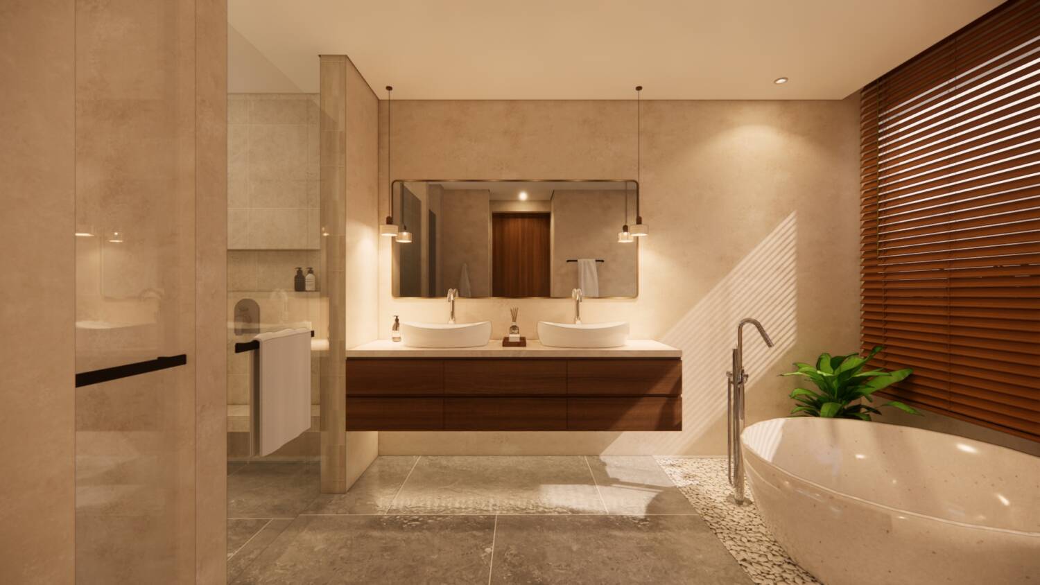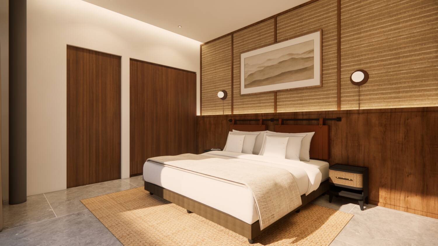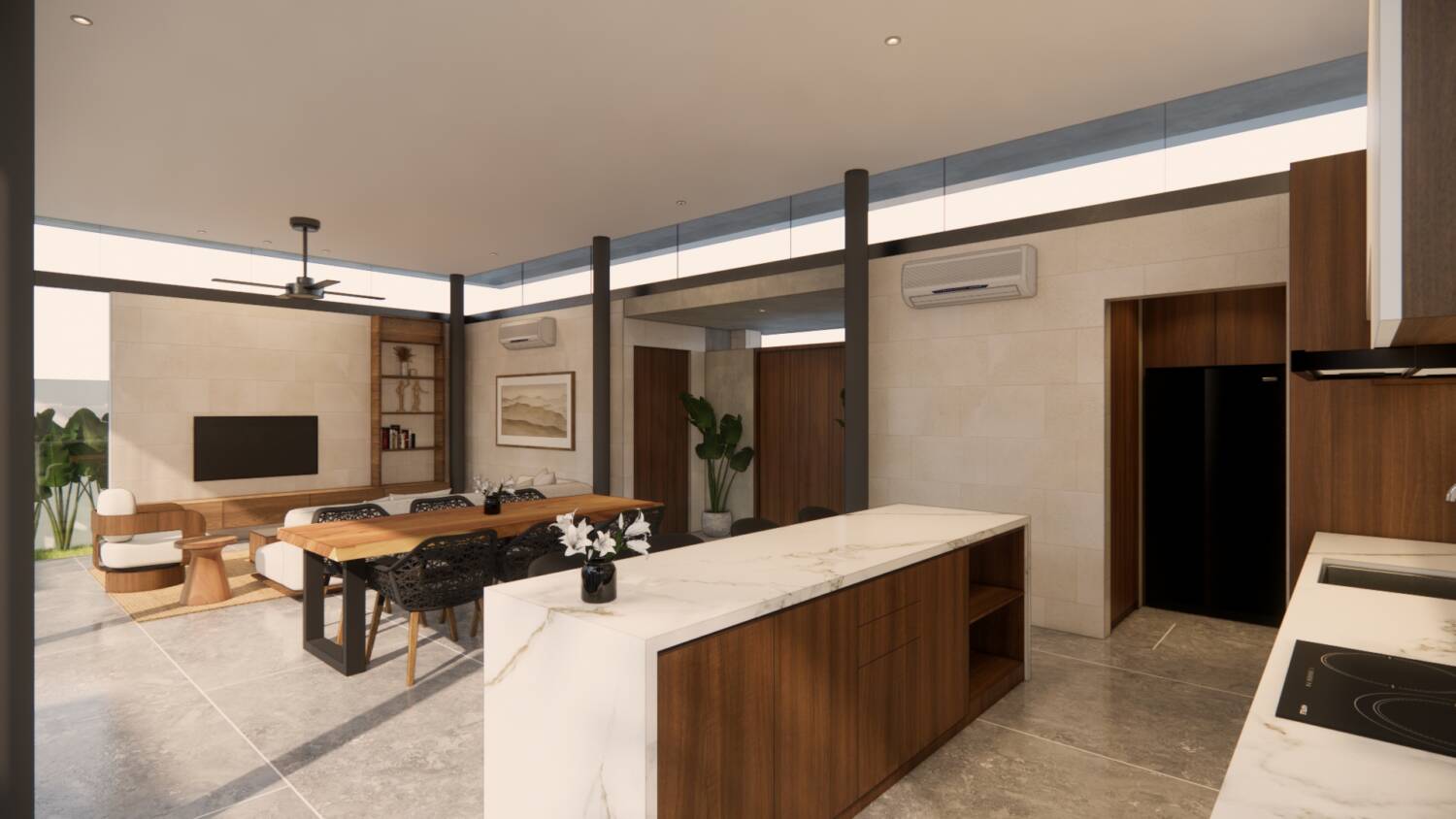 Each villa features private pools, open indoor–outdoor living, natural materials, full kitchens, and direct bedroom-to-pool flow. The design focuses on calm interiors, privacy, and natural ventilation, using Jogja stone, terrazzo and ulin wood to create a timeless architectural style
