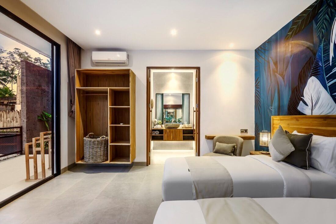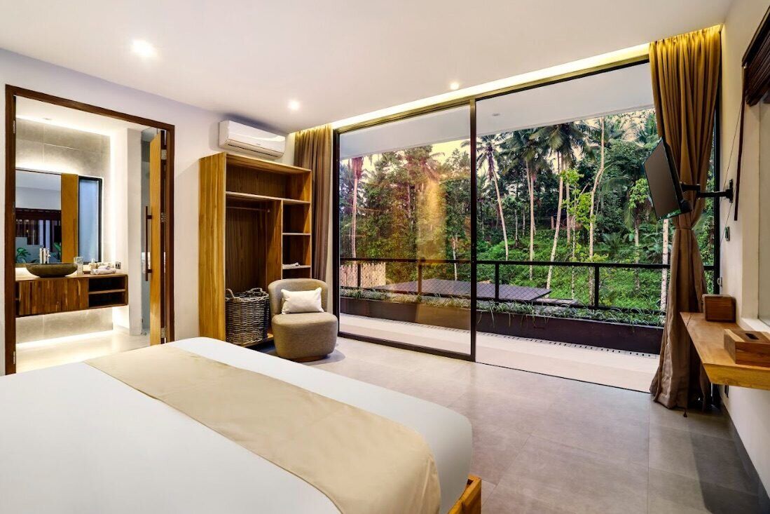This stunning 4-bedroom, four-story villa is designed for comfort and luxury. The top floor features two fully equipped bedrooms with breathtaking jungle views, while the level below offers two more cozy bedrooms. Descending further, you’ll find a stylish open kitchen, a spacious living area, and a stunning pool. Just off the living room, a staircase leads to your private Yoga Shala, a serene space perfect for morning or evening sessions, surrounded by the tranquility of the forest.