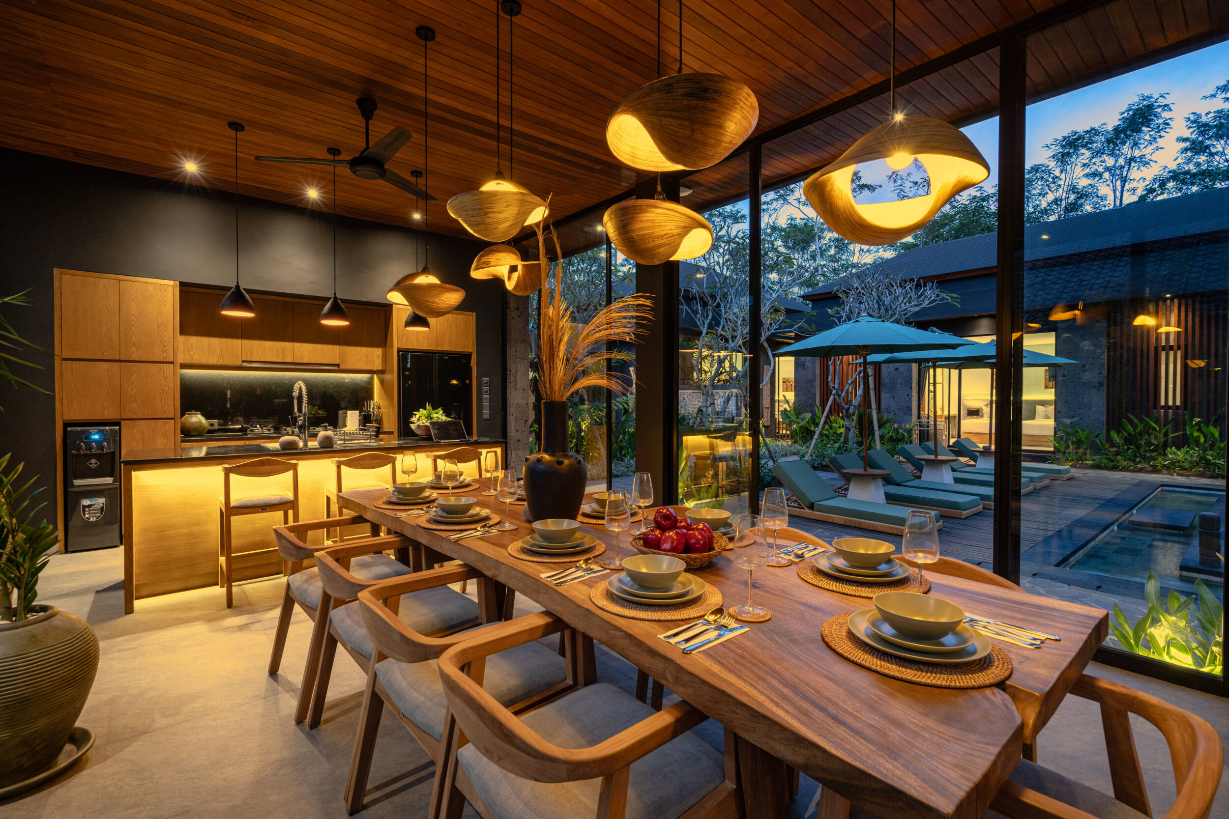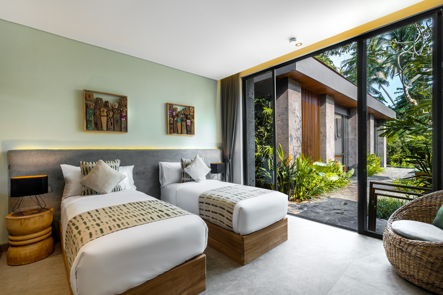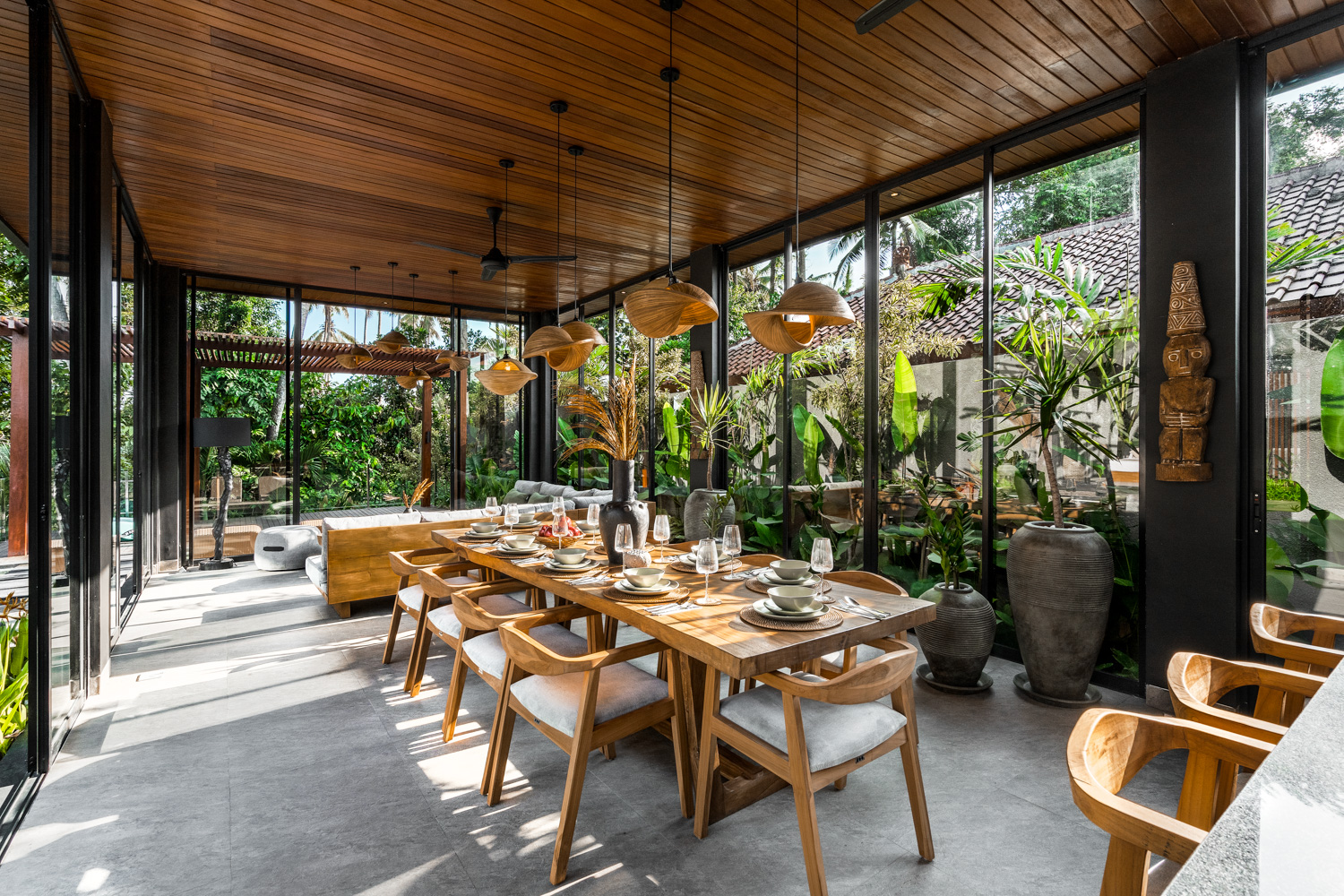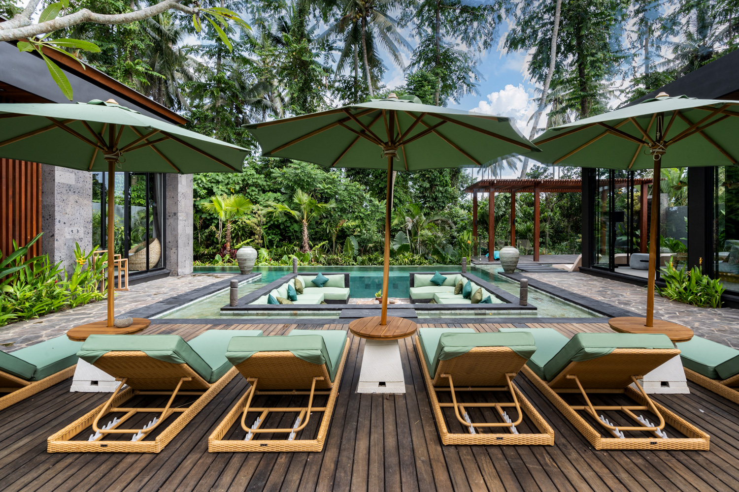 Each of the five bedrooms in the villa is welcoming and cozy, equipped with air conditioning, a smart TV and an en-suite bathroom. The Master bedroom features a queen-size bed, an indoor shower and an outdoor bathtub, offering a sumptuous experience. Bedrooms 3 and 5 also feature queen-size beds, while bedrooms 2 and 4 offer the flexibility of double-size beds that can convert to twin-size beds.