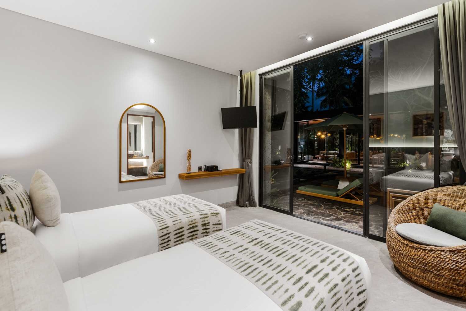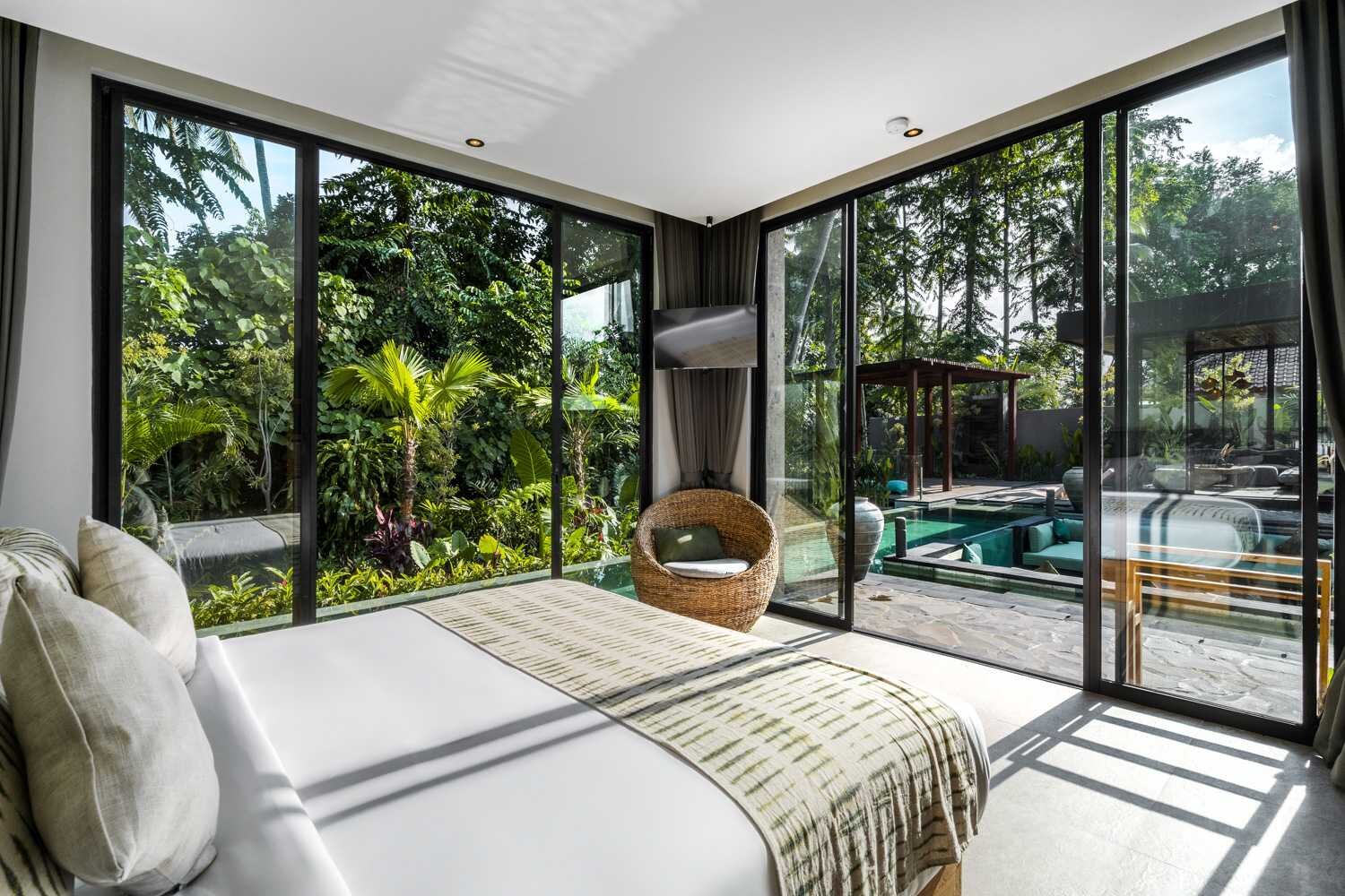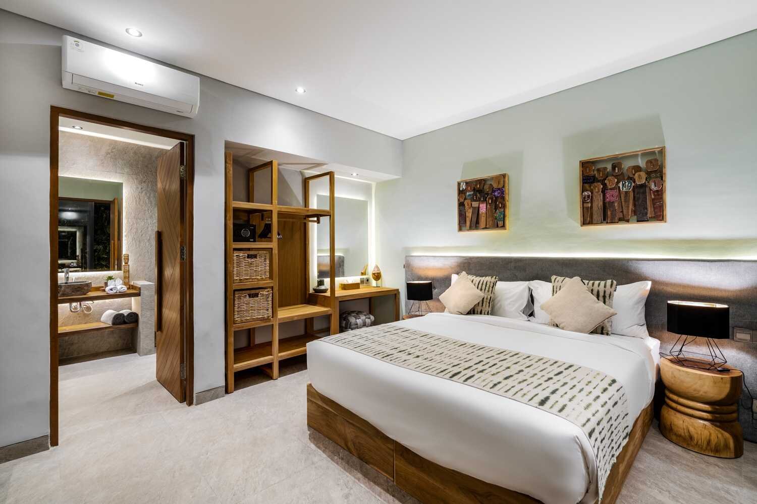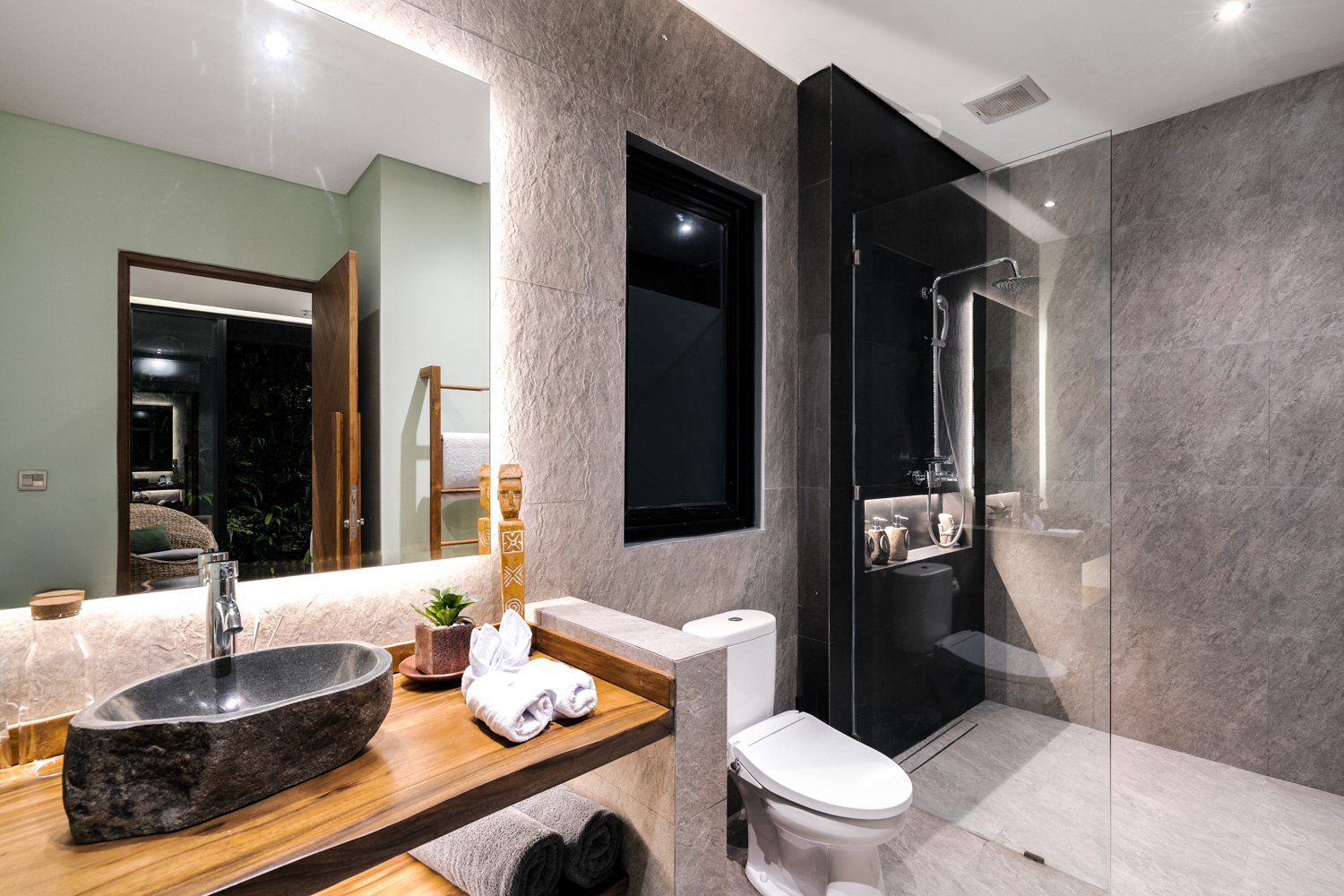 Each of the five bedrooms in the villa is welcoming and cozy, equipped with air conditioning, a smart TV and an en-suite bathroom. The Master bedroom features a queen-size bed, an indoor shower and an outdoor bathtub, offering a sumptuous experience. Bedrooms 3 and 5 also feature queen-size beds, while bedrooms 2 and 4 offer the flexibility of double-size beds that can convert to twin-size beds.