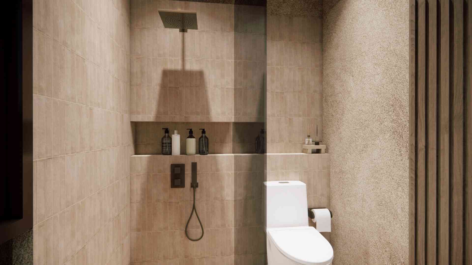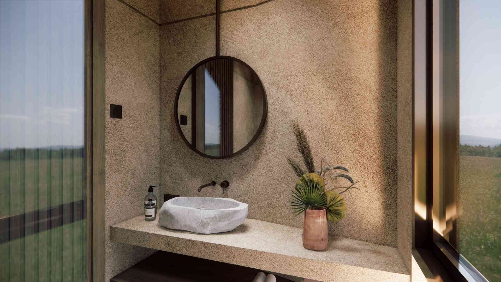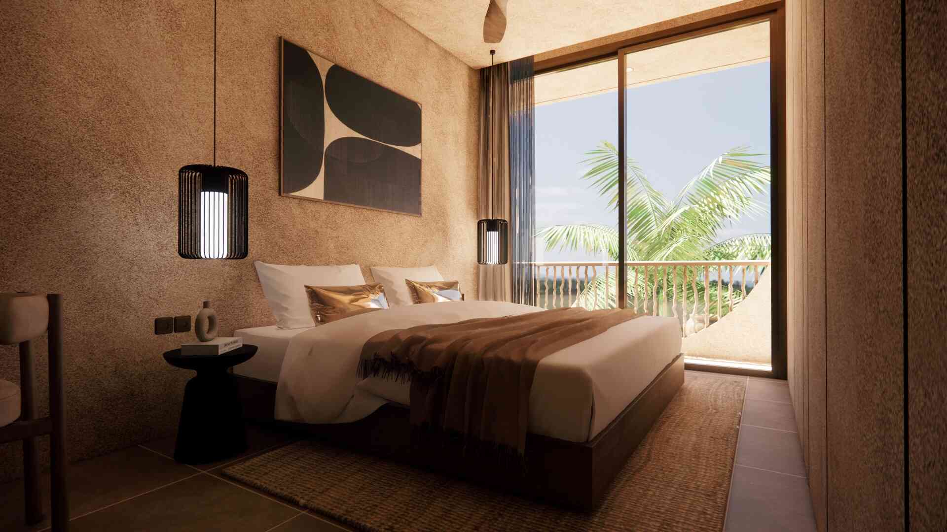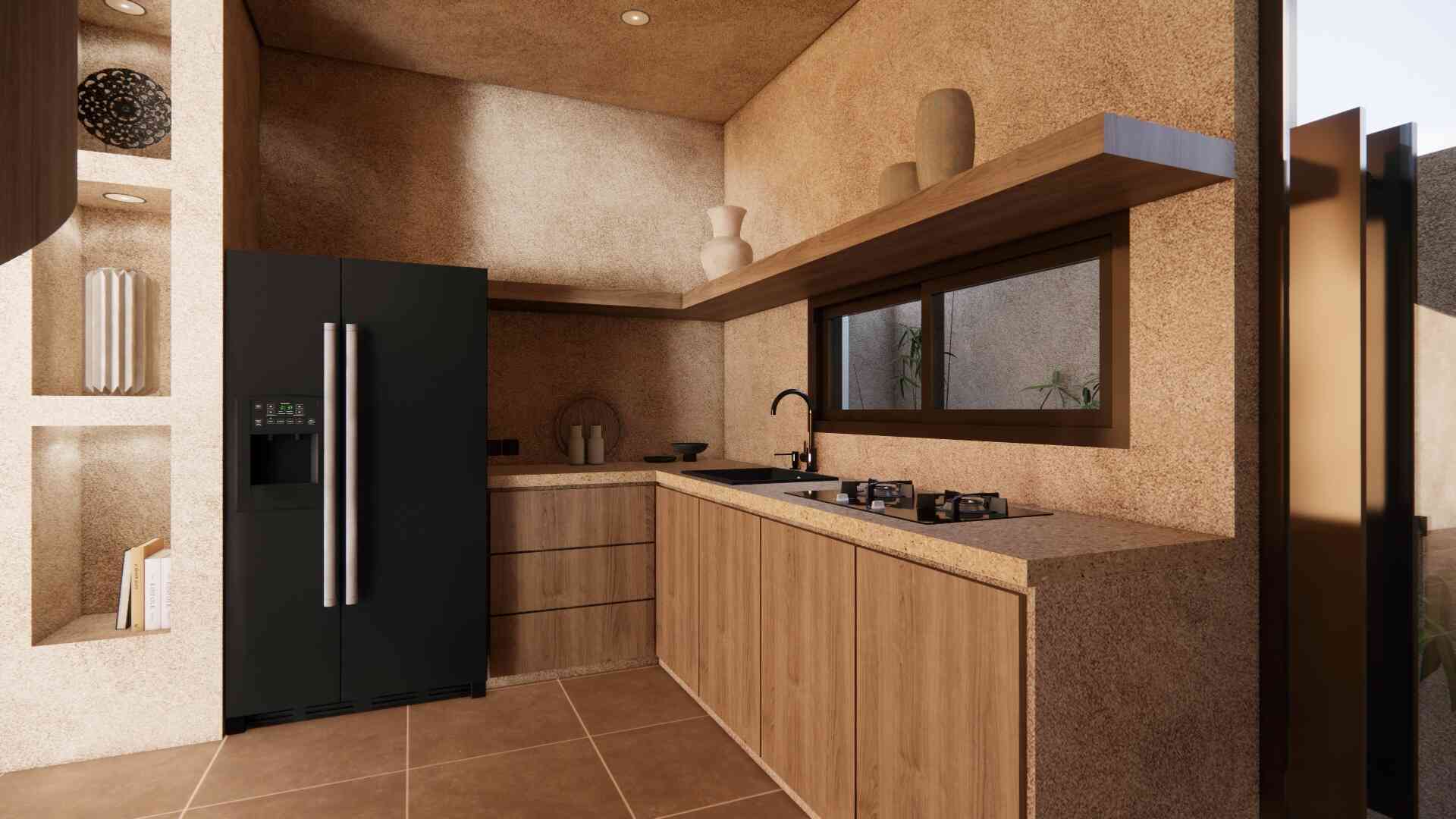 Inside, the villa offers a functional two-bedroom layout with a modern design, clean finishes, and a bright living space. The flow between indoor and outdoor areas works well for both personal use and daily rentals. The project takes inspiration from boutique resort-style architecture, blending warm materials with a contemporary look.