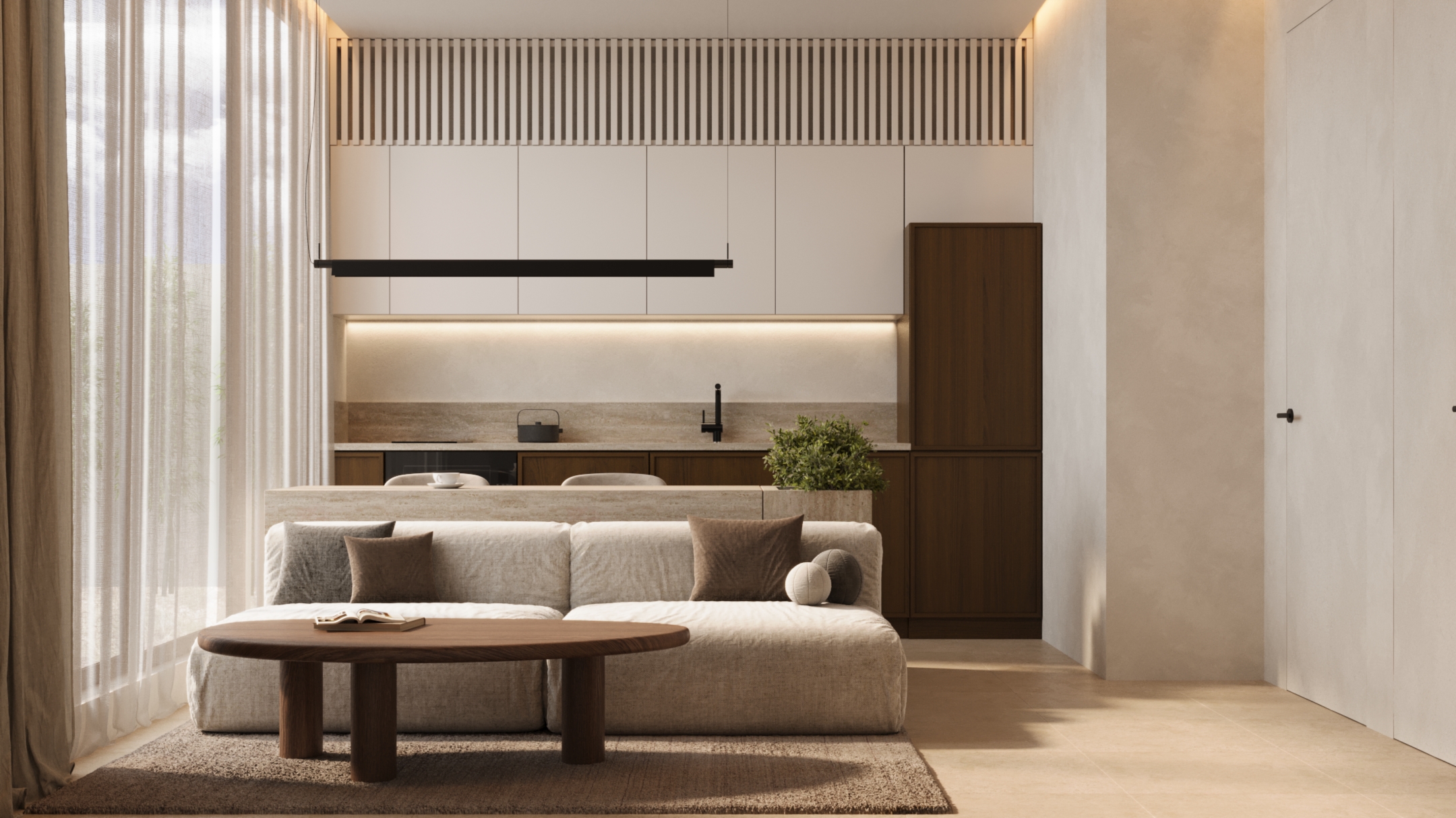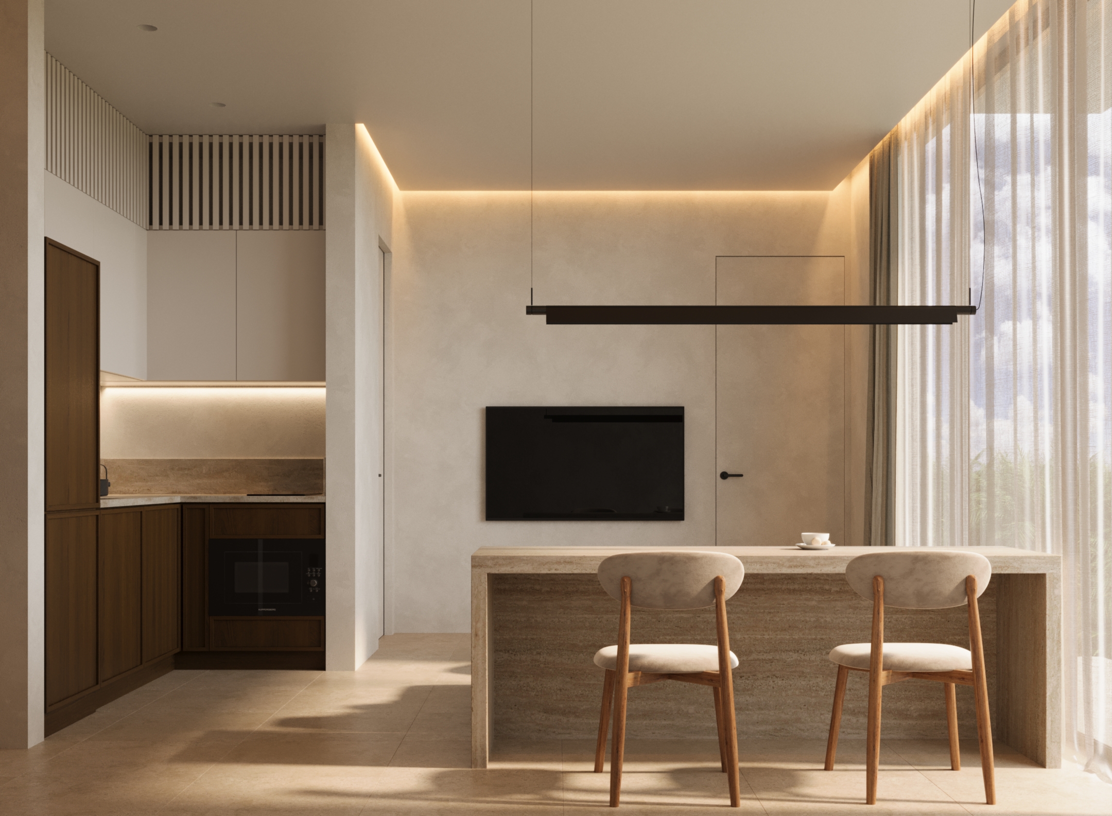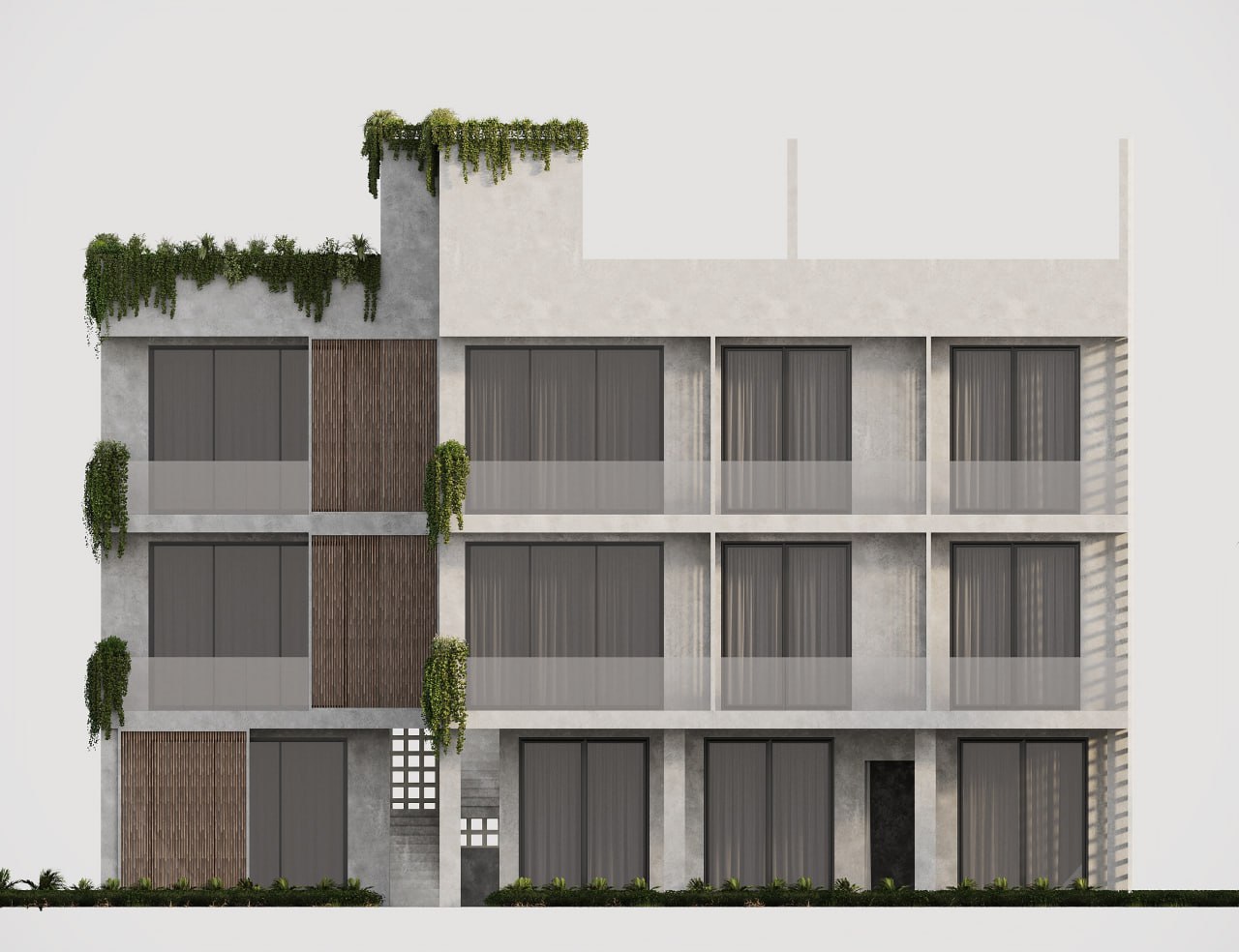 Designed for modern living and high investment appeal, the development features 12 premium apartments (28–46.8 sqm, 1–2 bedrooms), each elegantly crafted with teak wood finishes, natural stone, and a fully equipped kitchen.