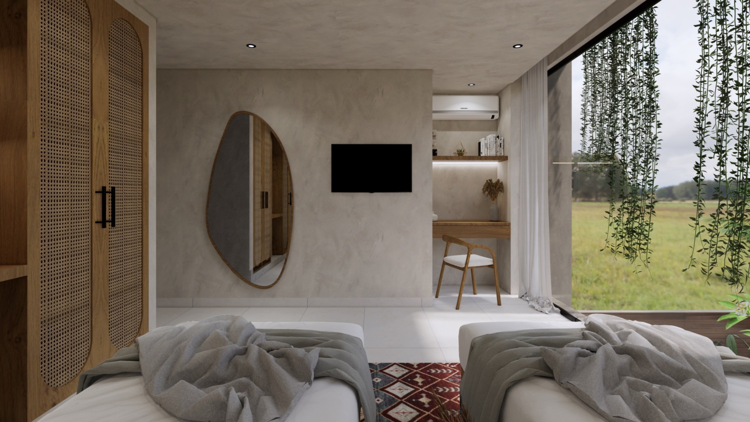 - Modern Tropical Design – Light, natural textures and warm wood accents create a peaceful sanctuary