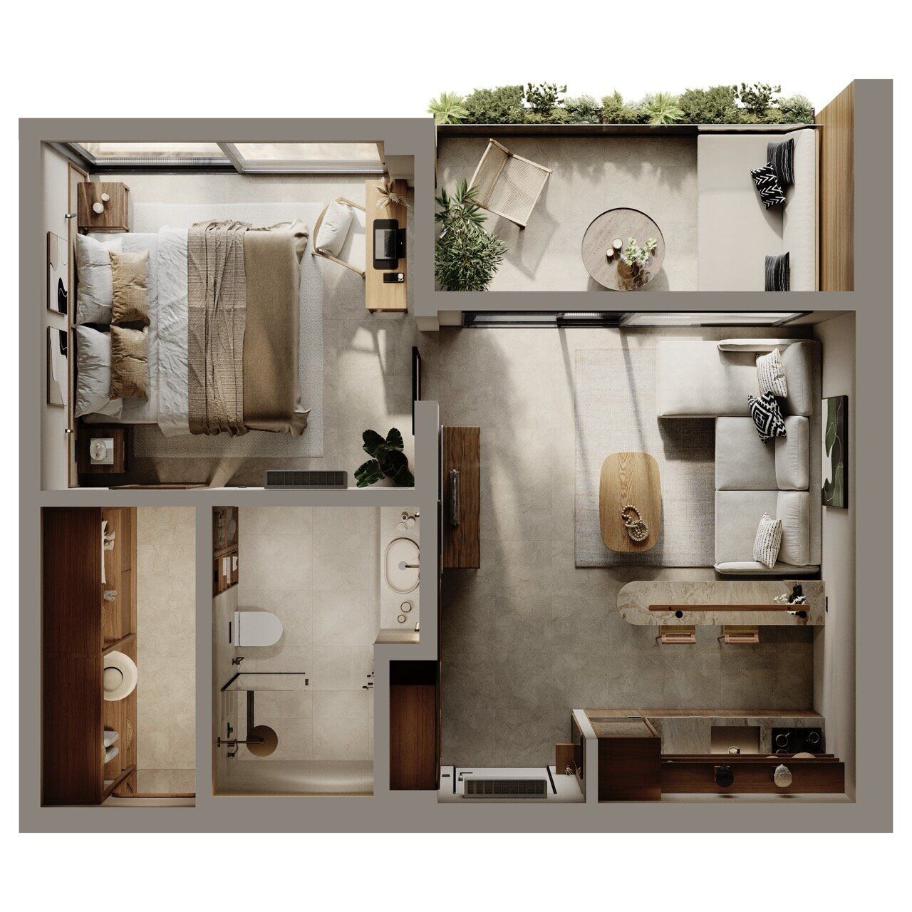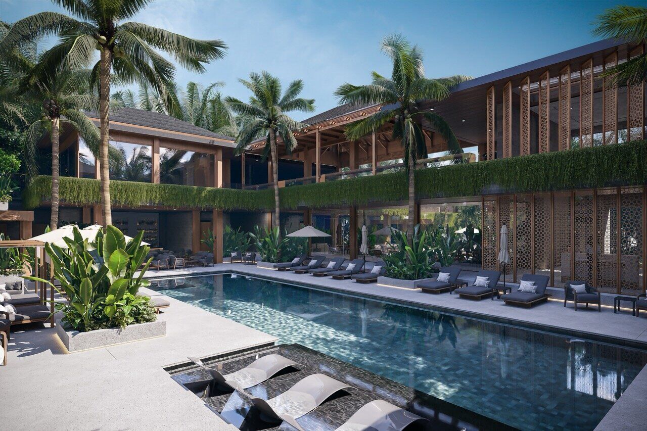 Each apartment is designed with functional luxury in mind, featuring a living room with kitchen, separate bedroom, dressing room, and private terrace. Ground-floor units enjoy direct access to a tranquil lagoon-style pool, while penthouses offer sweeping views from private balconies. With exceptional on-site infrastructure—from a nightclub-style fitness club and rooftop lounge to a spa, coworking hub, restaurant, and recovery center—residents enjoy resort-style convenience with a residential feel.