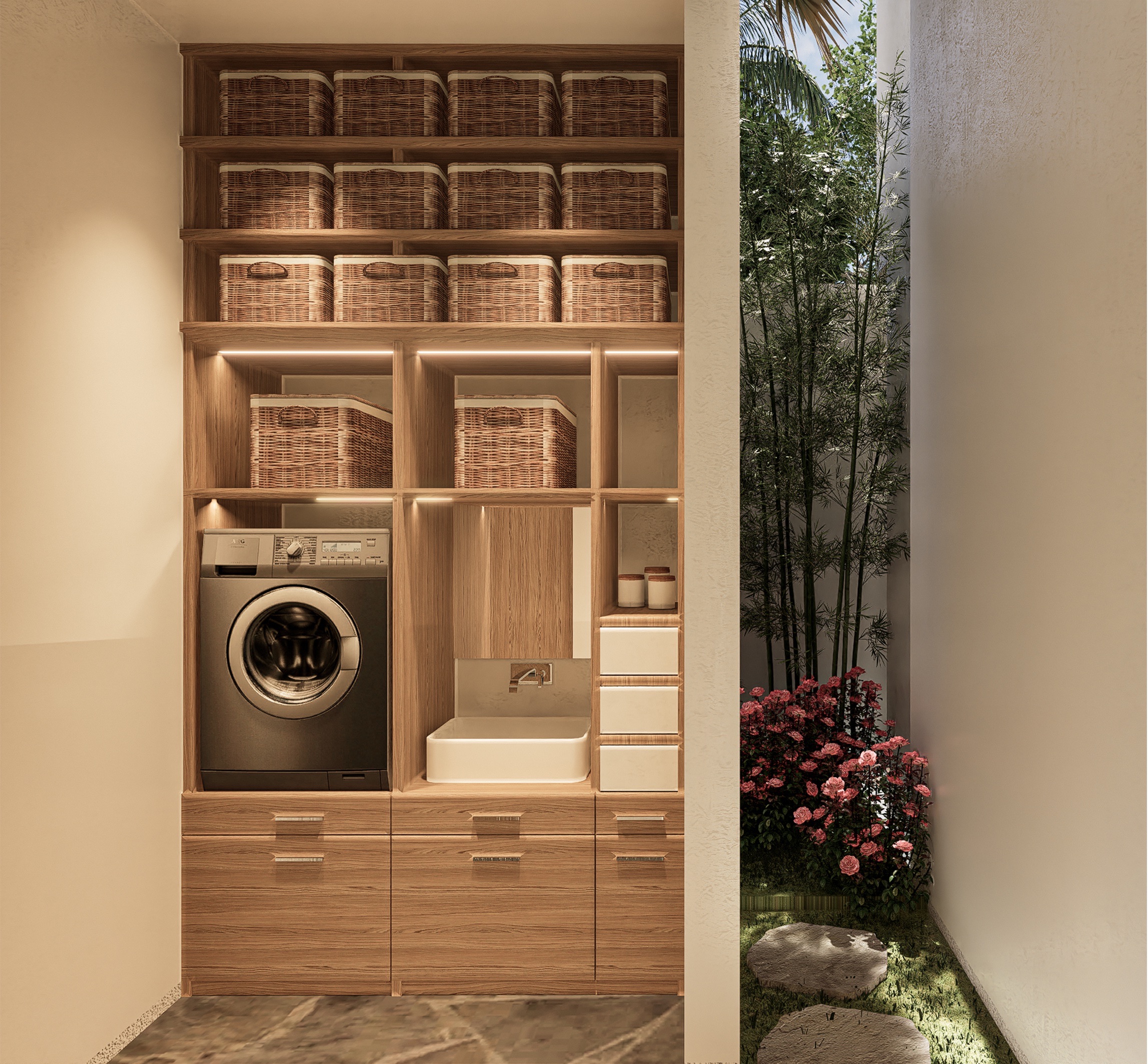 • Built-in storage and laundry room