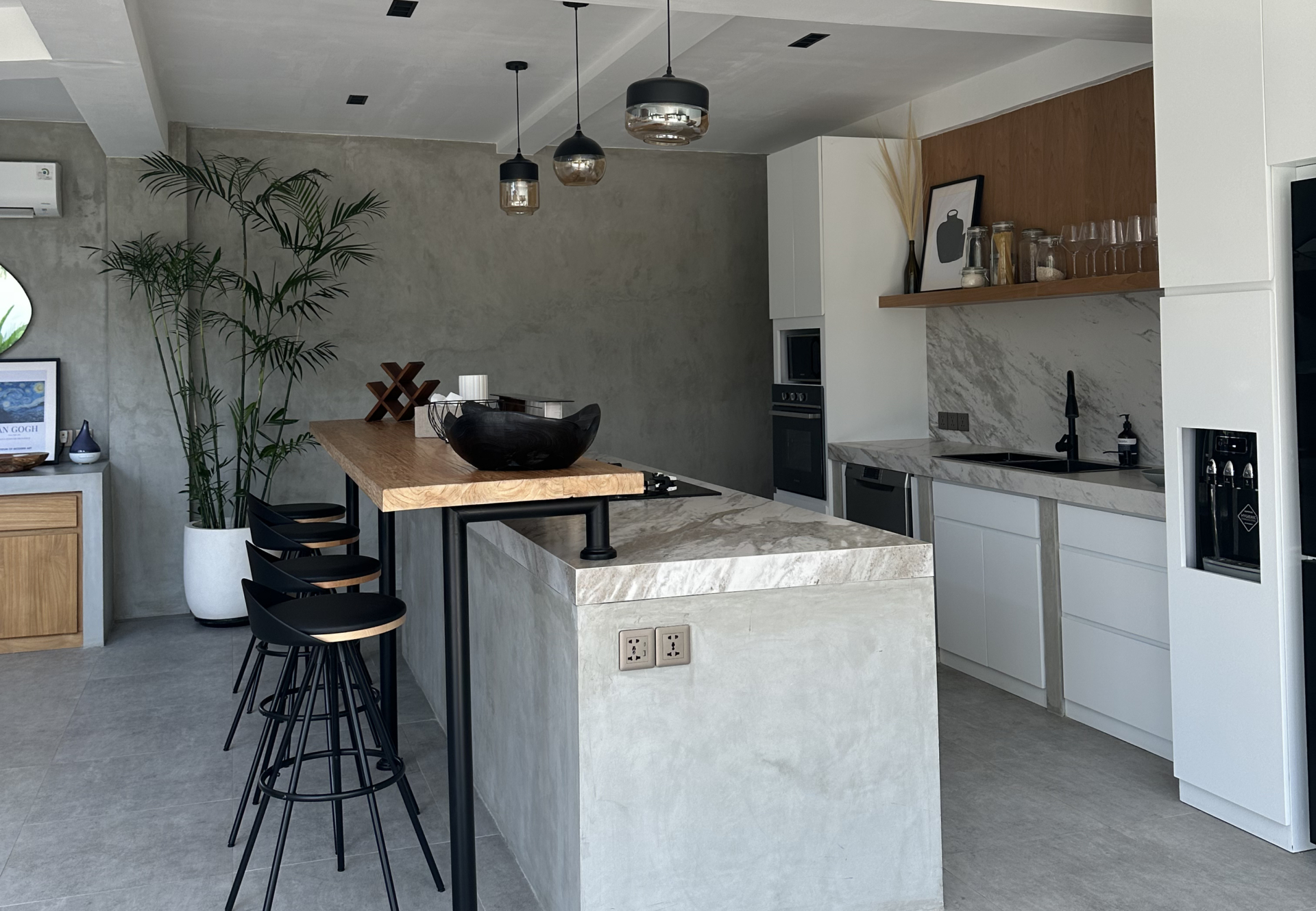 The villa features enclosed living spaces, a fully equipped kitchen with dishwasher and hood, and a 10-meter swimming pool surrounded by lush tropical greenery. With high-quality finishes and thoughtful design throughout, it provides a peaceful yet connected retreat in one of Bali’s most desirable neighborhoods.